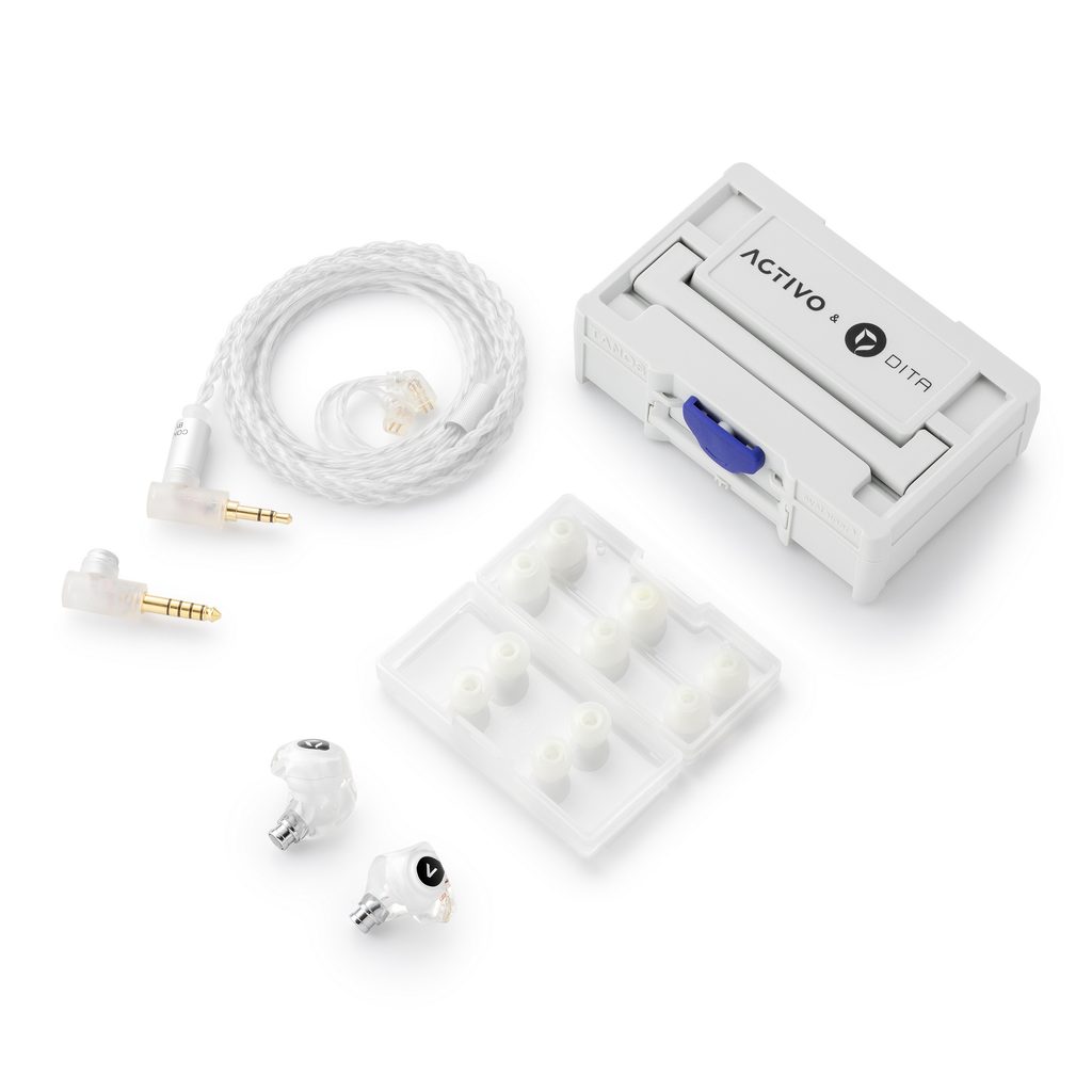 Fülbe helyezhető fejhallgató (IEM), mely az ACTIVO és a DITA márkák exkluzív együttműködésében készült.