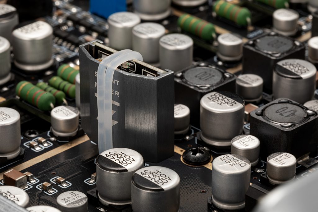 A DELUXE verzióban a legújabb és eddigi legtisztább tápmoduljainkat, a Silent Power 02-t alkalmaztuk. Ezek abszolút legalacsonyabb zajszintet mutatják a tápegységeink közül, és biztonsággal felülmúlják még az akkumulátoros energiát is. Mindez az extrém hatékony szűrésnek köszönhető, amely akár 200-szorosan is túlszárnyalja a hagyományos szabályzókat.