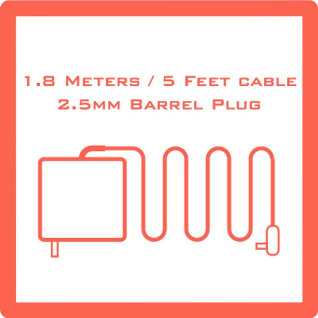 Kábelhossz: 1,8 m Aljzatokhoz: US, AUS, EU, UK Kimeneti csatlakozó: 2,5 mm-es (középen pozitív)