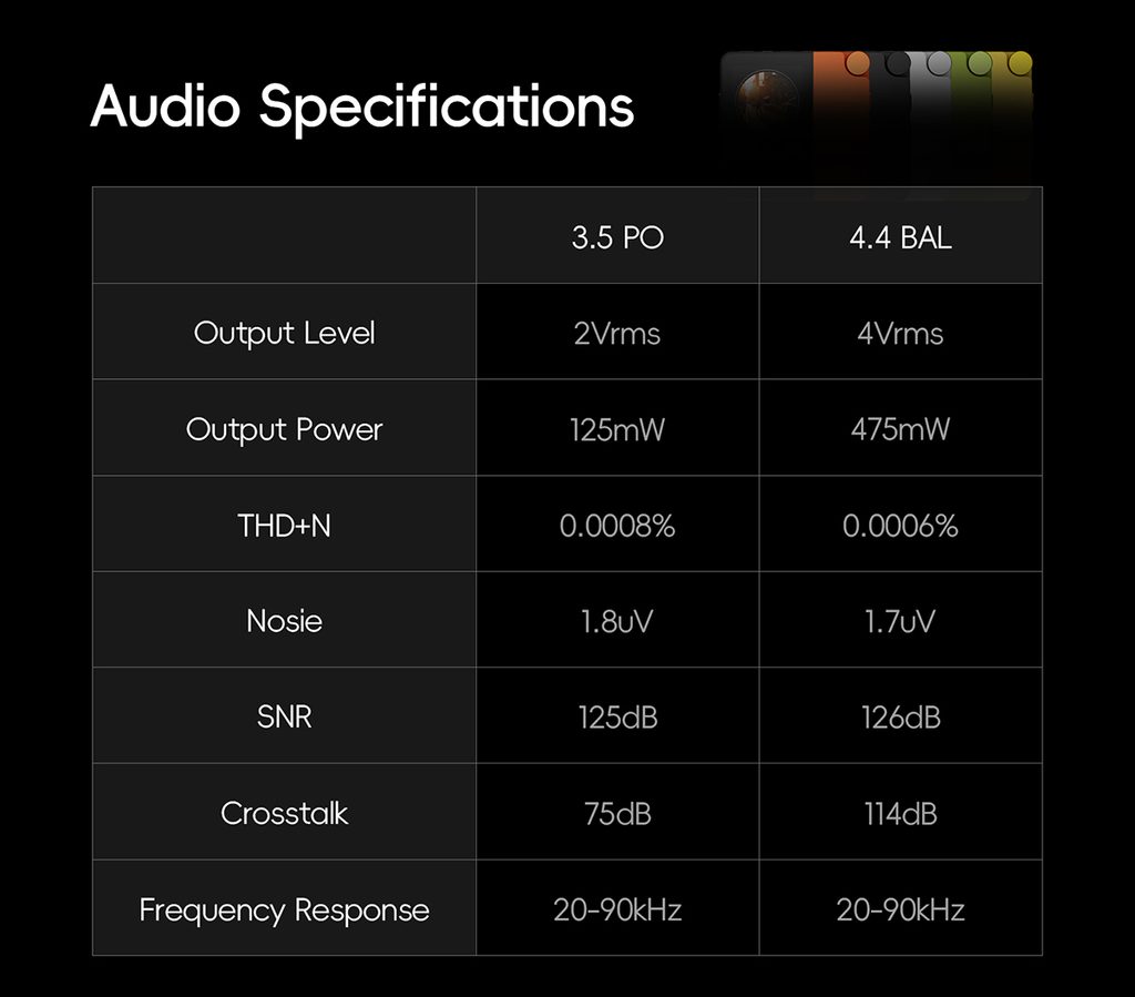 • 3.5 mm-es Single-ended és 4.4 mm-es Balanced kimenetek.