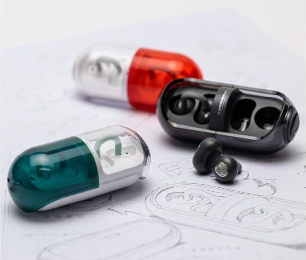 Vezeték nélküli fülhallgató szilikonbetét nélküli speciális OWS kialakítással, fülre akasztható verzióban
