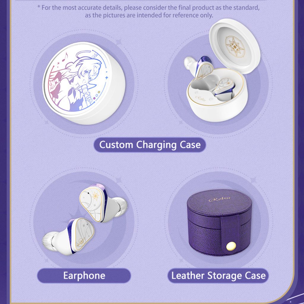 TWS vezeték nélküli fülhallgató hibrid meghajtópárral és aktív zajszűréssel (ANC). A Honkai: Star Rail videojáték alapján készült dizájn.